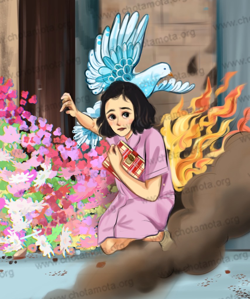 “Anne Frank” by Puja kar using Catchphrase “What wars beget us? / যুদ্ধ করে করবি কী তা বল?”