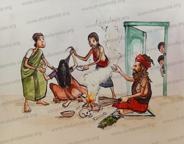 “A good composition with cartoon-like characters, unambiguously depicting the customary abuse of people’s blind faith. Idea and skill merges well. The omens still relevant in our villages are well depicted. A well-balanced composition with good use of colours. With improved drawing skills, expect to see more such creations from the artist in the future.“- JURY.