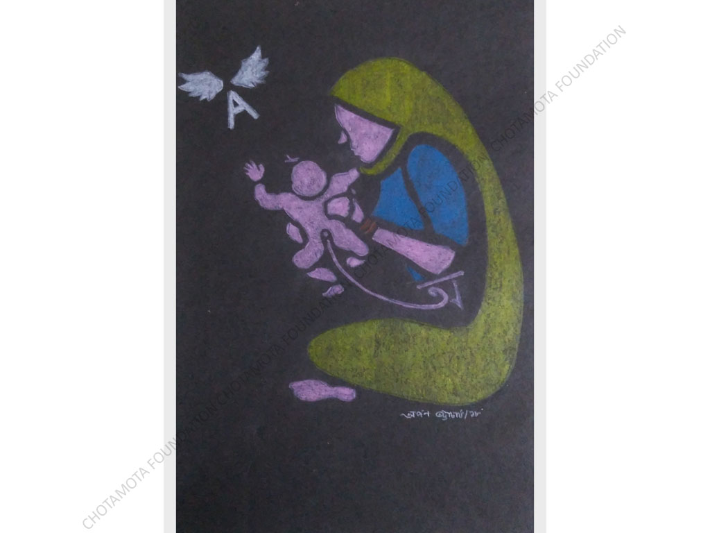Depicts a well-recognized but not-much-talked-about phenomenon. What the artist wants to say is not easy to express in a single frame. Yet, he has given it a visual shape in an exquisitely simple way. Like to see the artist explore deeper the characteristic style of his and produce incisive social commentary in the future.- Jury