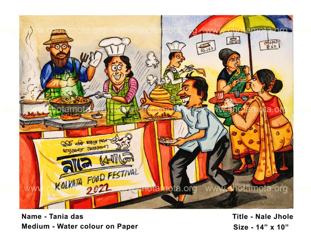 “A beautiful water colour illustration capturing festivity of food lovers. Vibrant colours reflecting the artist’s confidence. Artistic skills pretty good but need improvement, particularly regarding composition.”– JURY