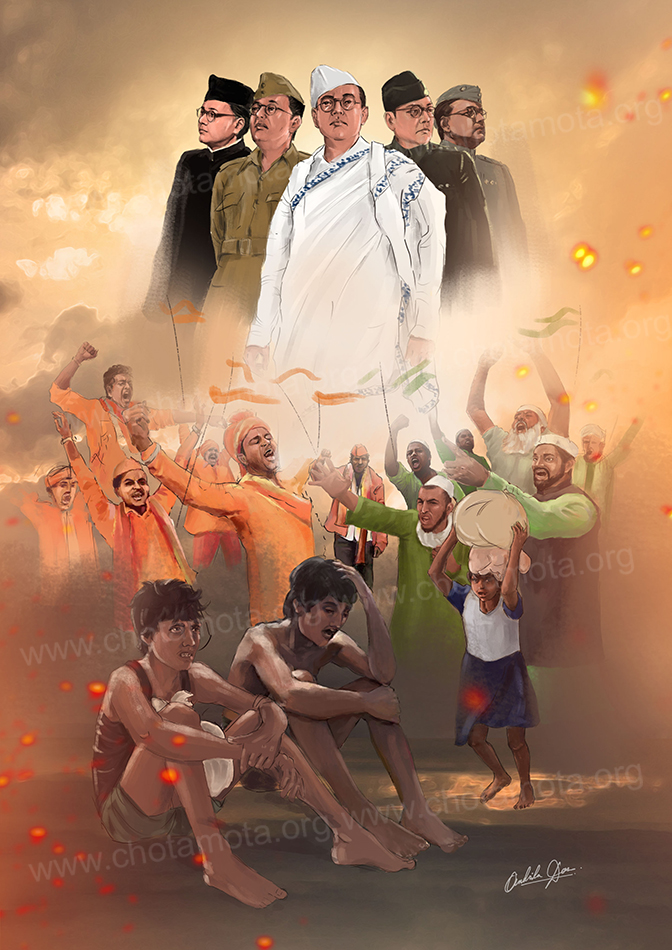 “খুব সুন্দর digital কাজ। Almost a mirror image of our current times, the work depicts conflict and its repercussions very well- a problem persisting from the times of Netaji himself.”– JURY.
